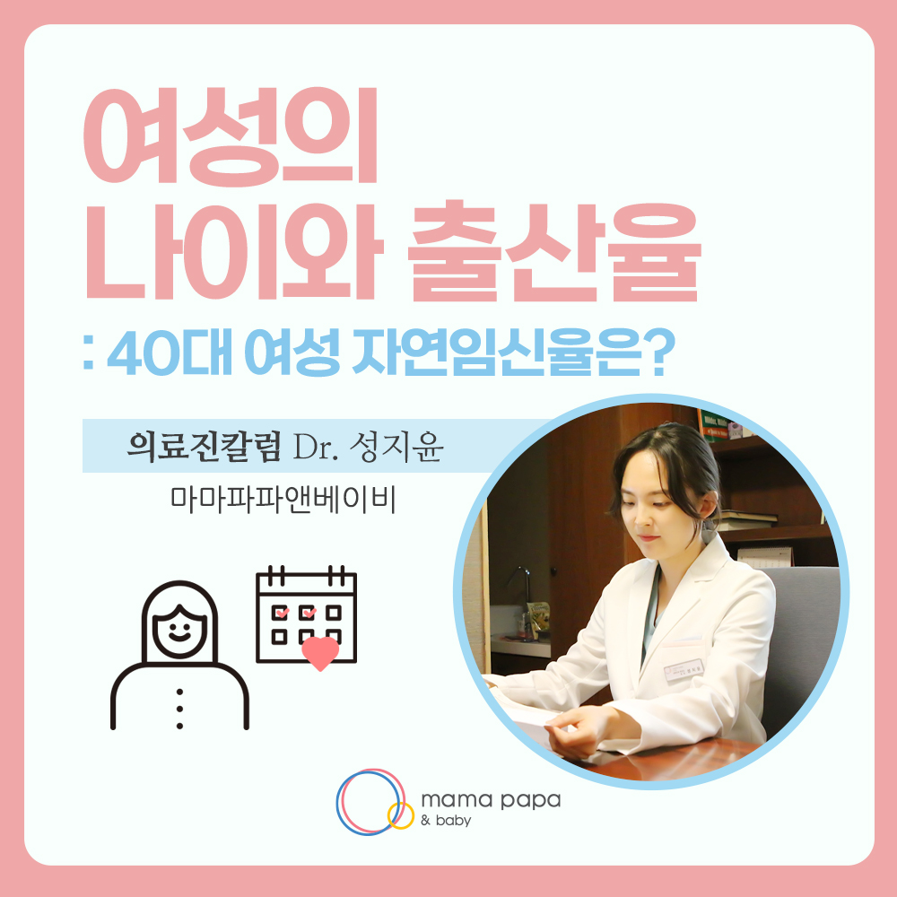 안녕하세요.마마파파앤베이비 산부인과2과 과장 성지윤입니다.지난 시간에는 여성의 나이에 따른 임신...