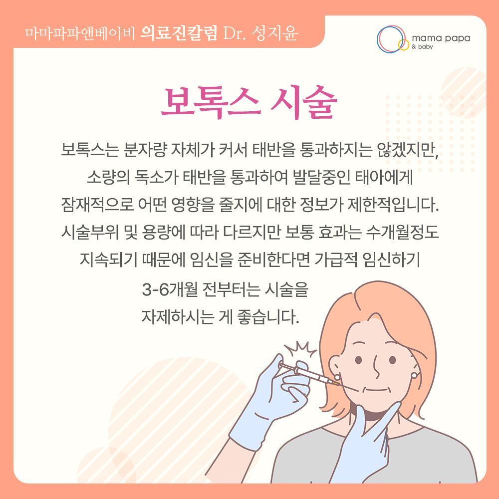보톡스는 분자량 자체가 커서 태반을 통과하지 않을 것이라 예상하지만,