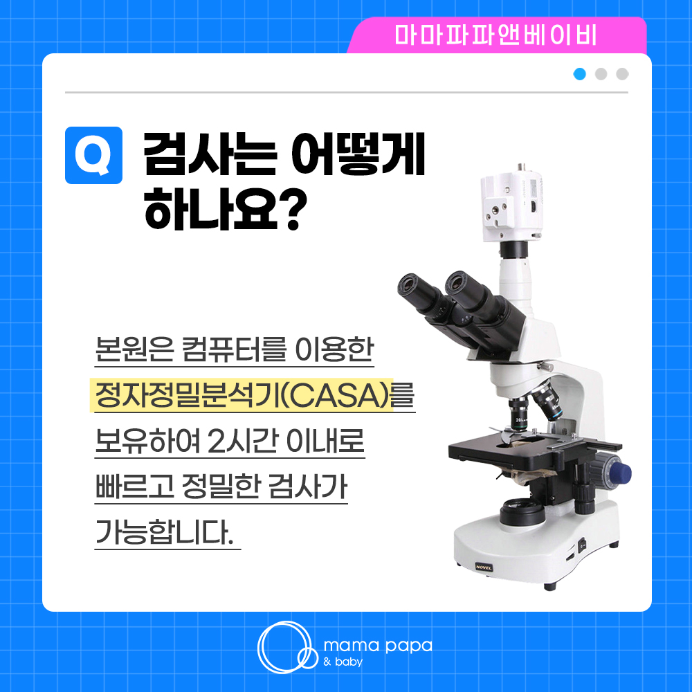 안녕하세요.마마파파앤베이비 산부인과입니다.남성검사(정액검사)에 관해 많은 분들이사전에 문의를 주...