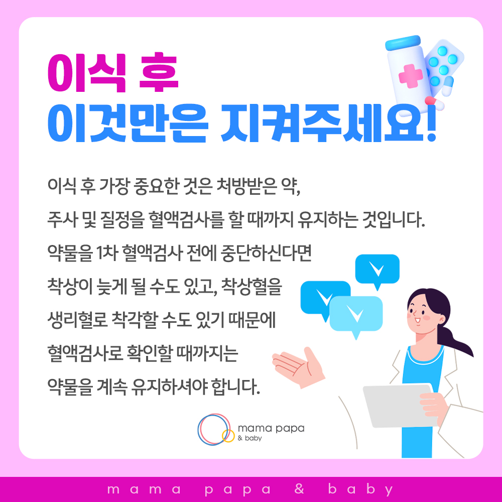 NO. 23944 DATE. 2025.12.19 NAME. 마마** FILES. 251211_마마파파_카드뉴스1_배아이식후주의사항_5장.jpg
