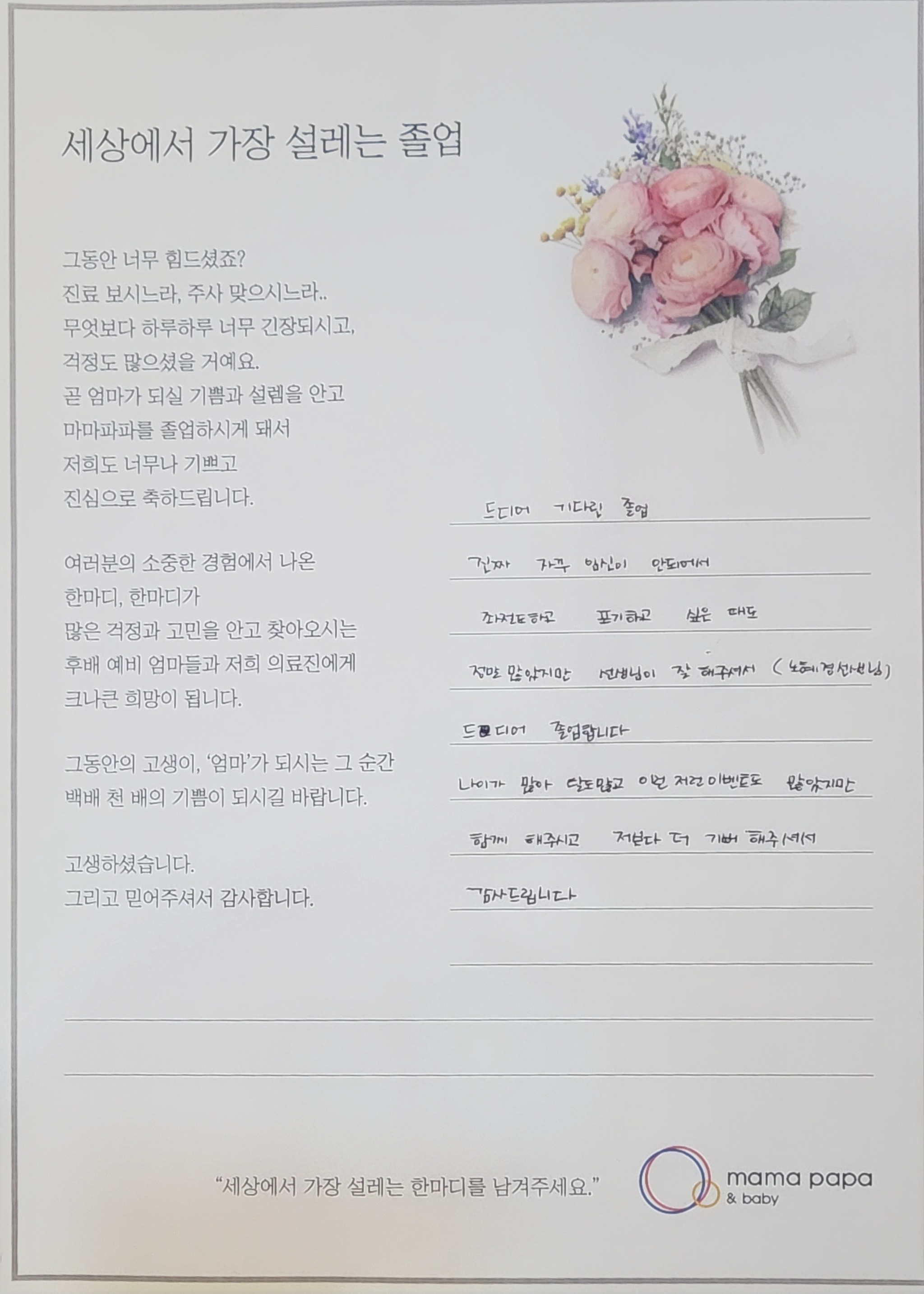 마마파파&베이비 졸업을 진심으로 축하드립니다.