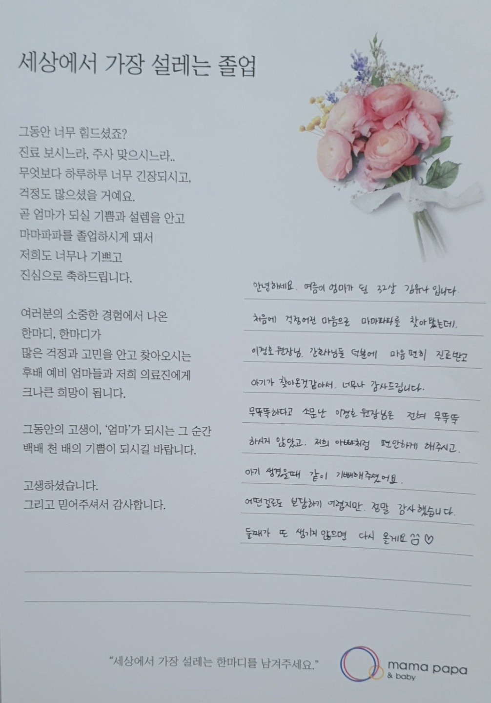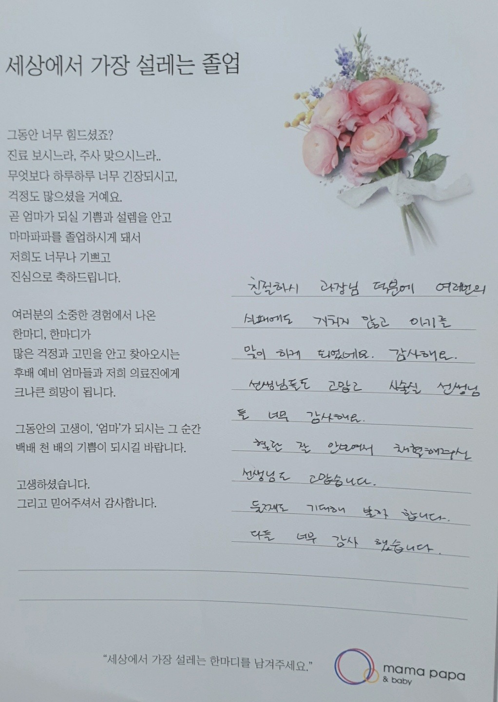 마마파파&베이비 졸업을 진심으로 축하드립니다.