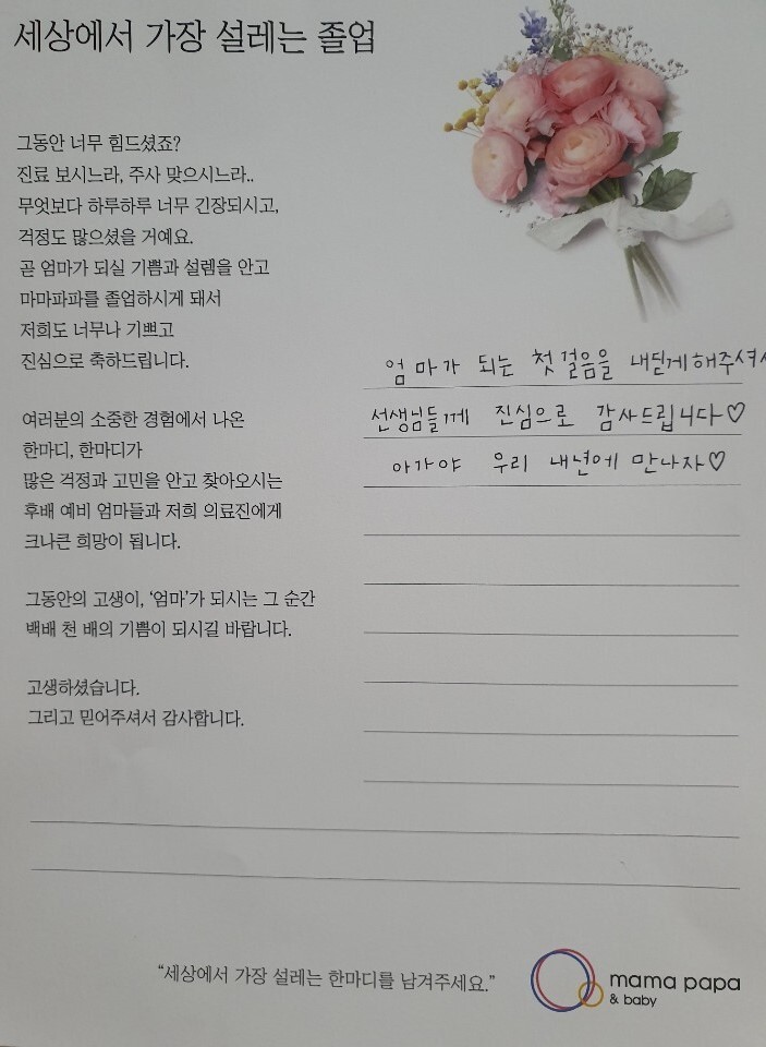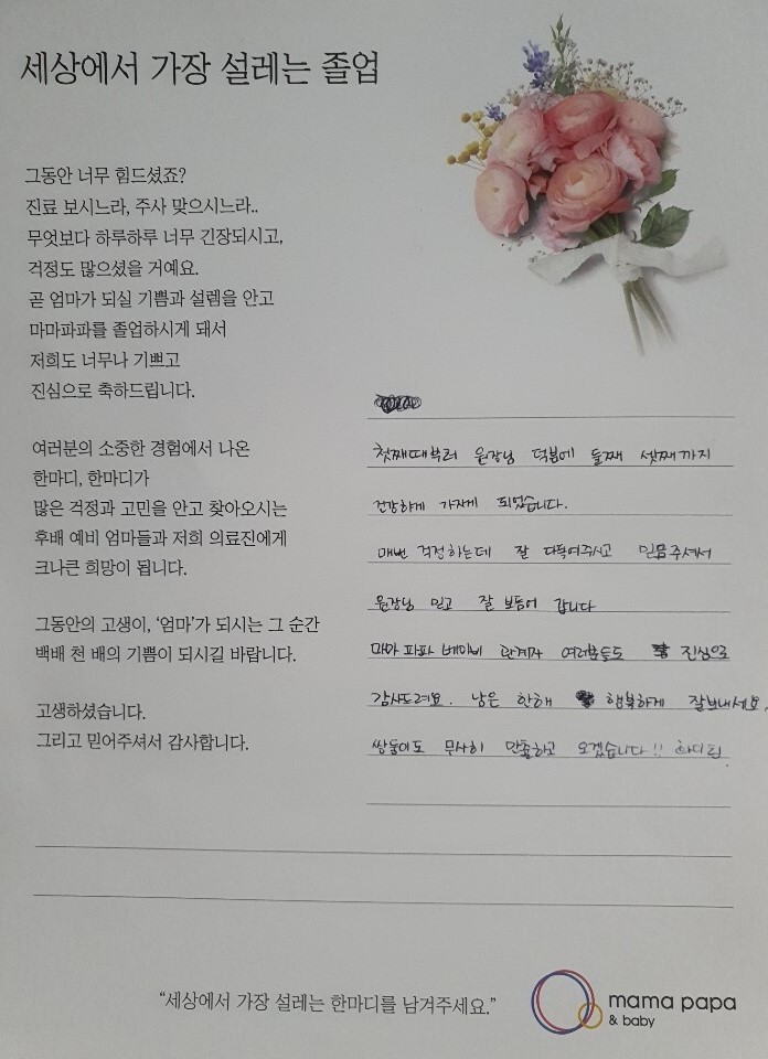 마마파파&베이비 졸업을 진심으로 축하드립니다.