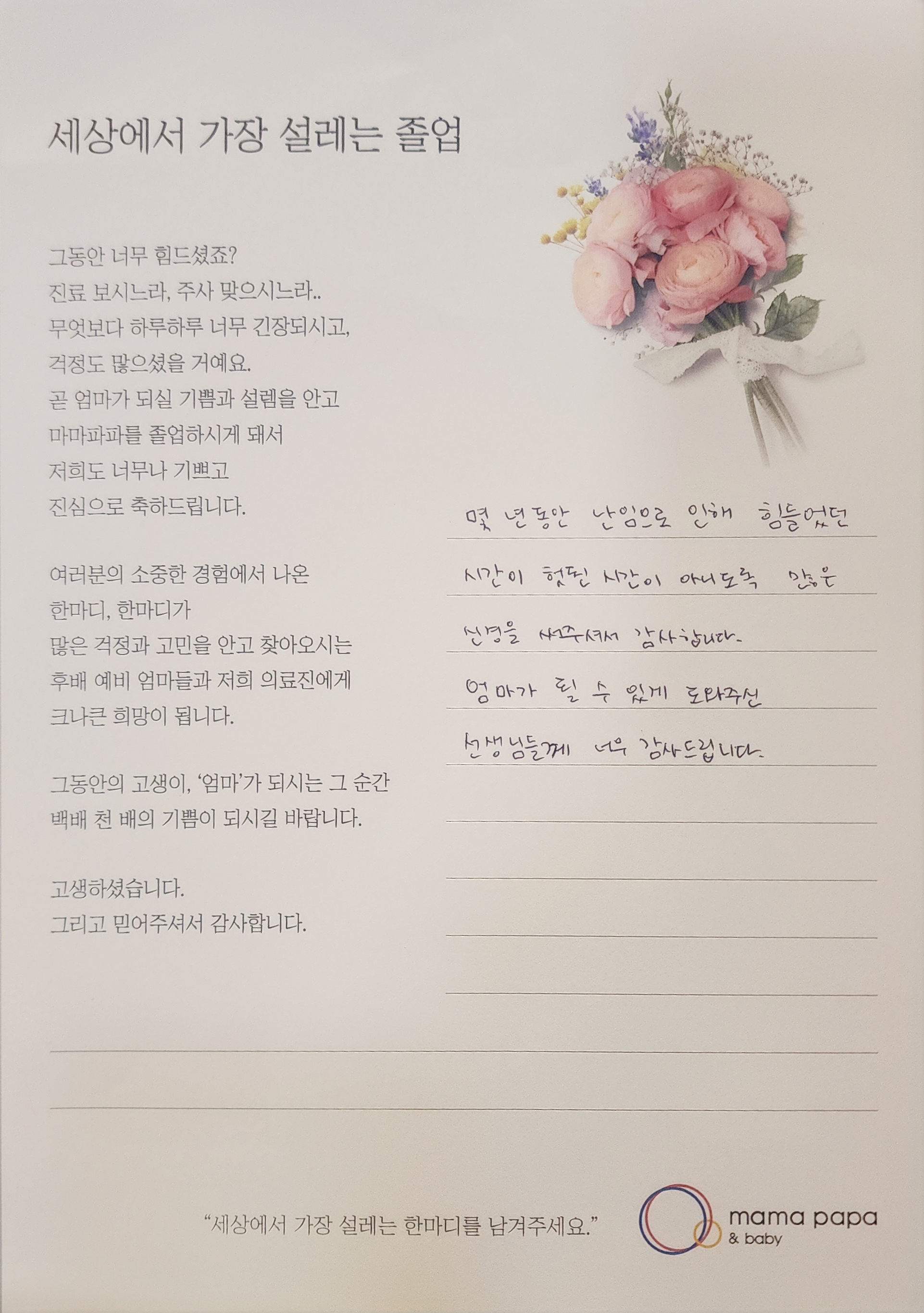 마마파파&베이비 졸업을 진심으로 축하드립니다.
