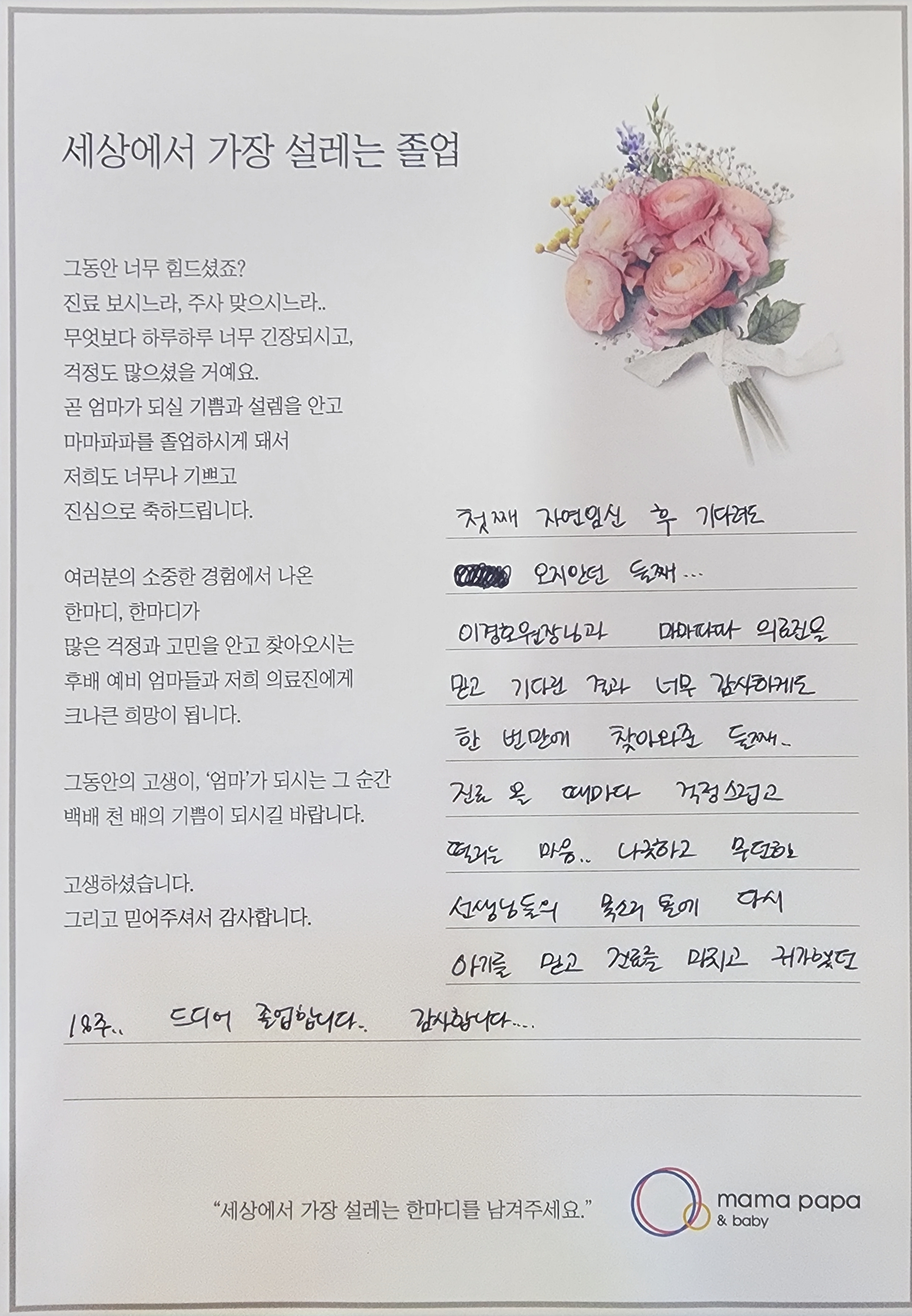 졸업을 축하드립니다.건강하게 분만하세요.