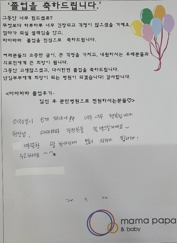 마마파파&베이비 졸업을 진심으로 축하드립니다.