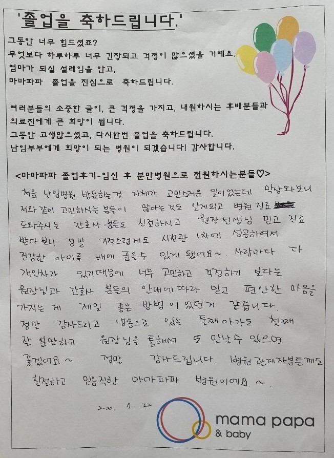 졸업을 축하드립니다. 건강하게 분만하세요!