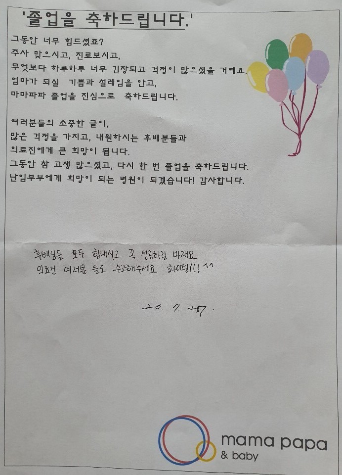 마마파파&베이비 졸업을 진심으로 축하드립니다.