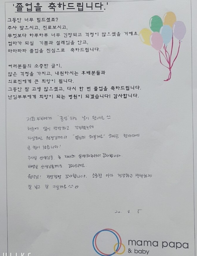 마마파파&베이비 졸업을 진심으로 축하드립니다.