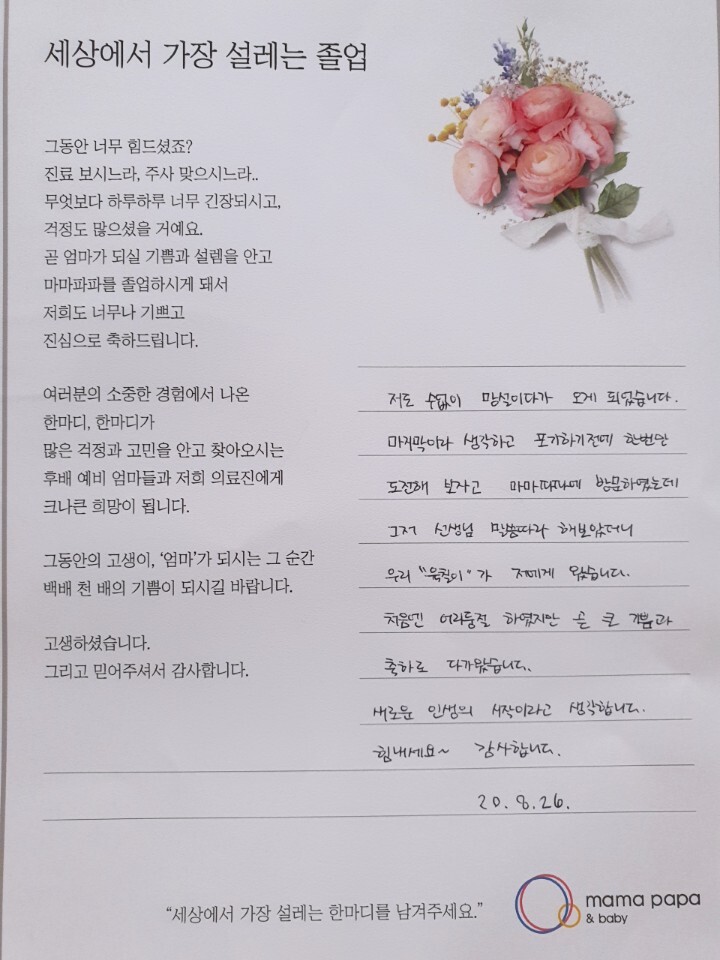 마마파파&베이비 졸업을 진심으로 축하드립니다.