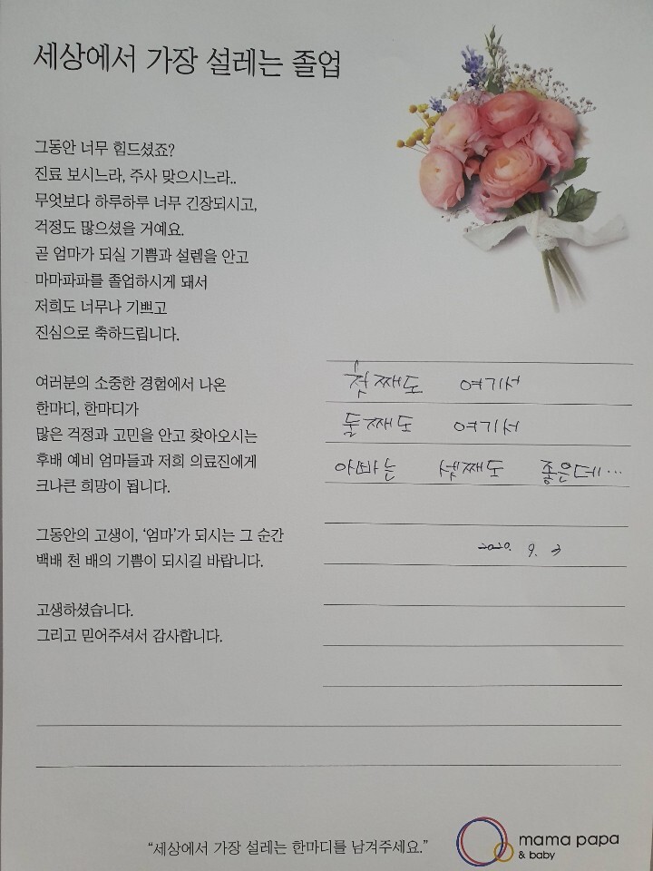 마마파파&베이비 졸업을 진심으로 축하드립니다.