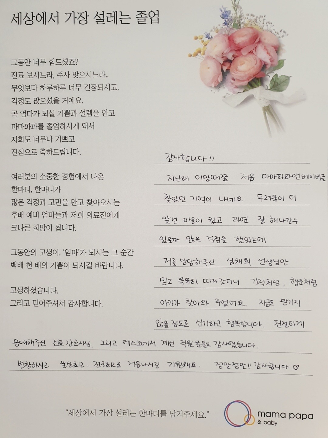 마마파파&베이비 졸업을 진심으로 축하드립니다.