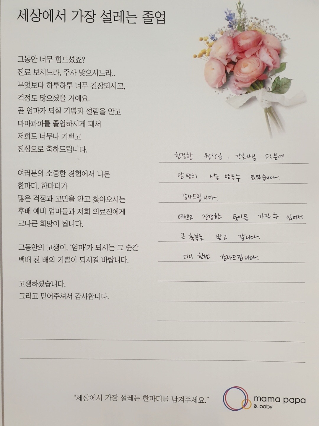 마마파파&베이비 졸업을 진심으로 축하드립니다.