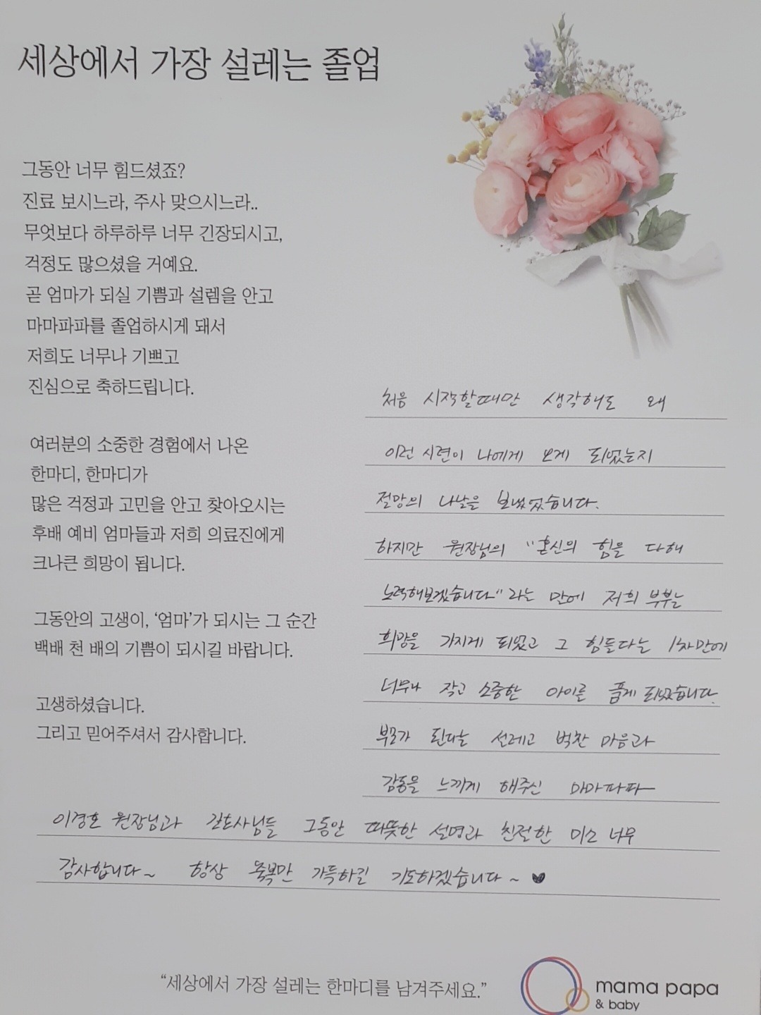 마마파파&베이비 졸업을 진심으로 축하드립니다.