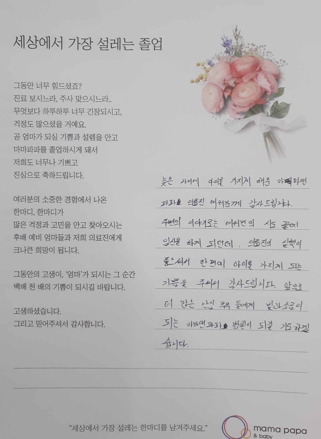 마마파파&베이비 졸업을 진심으로 축하드립니다.