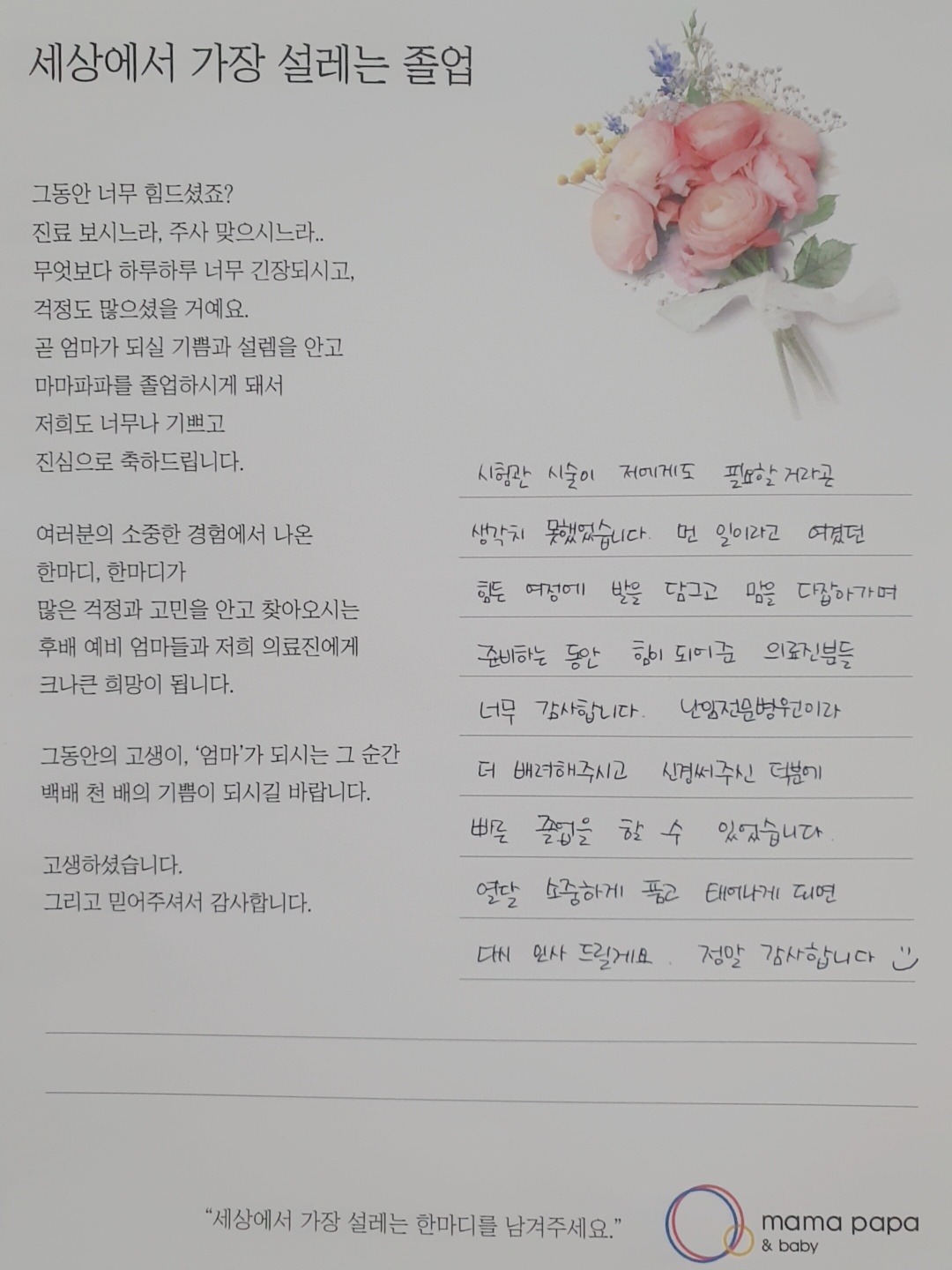 마마파파&베이비 졸업을 진심으로 축하드립니다.