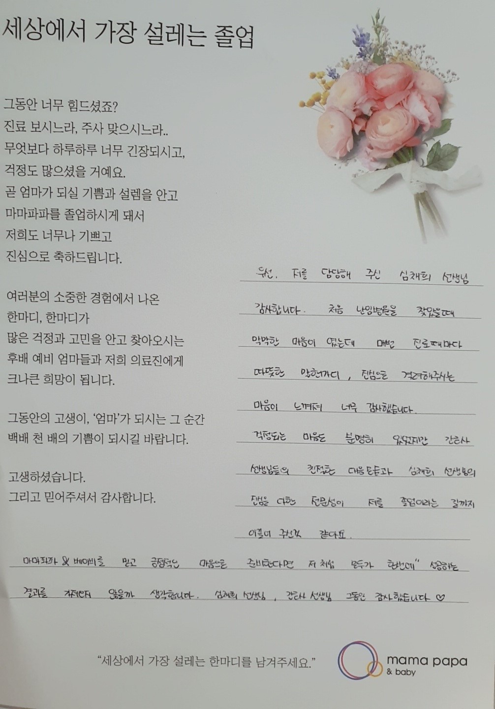 마마파파&베이비 졸업을 진심으로 축하드립니다.