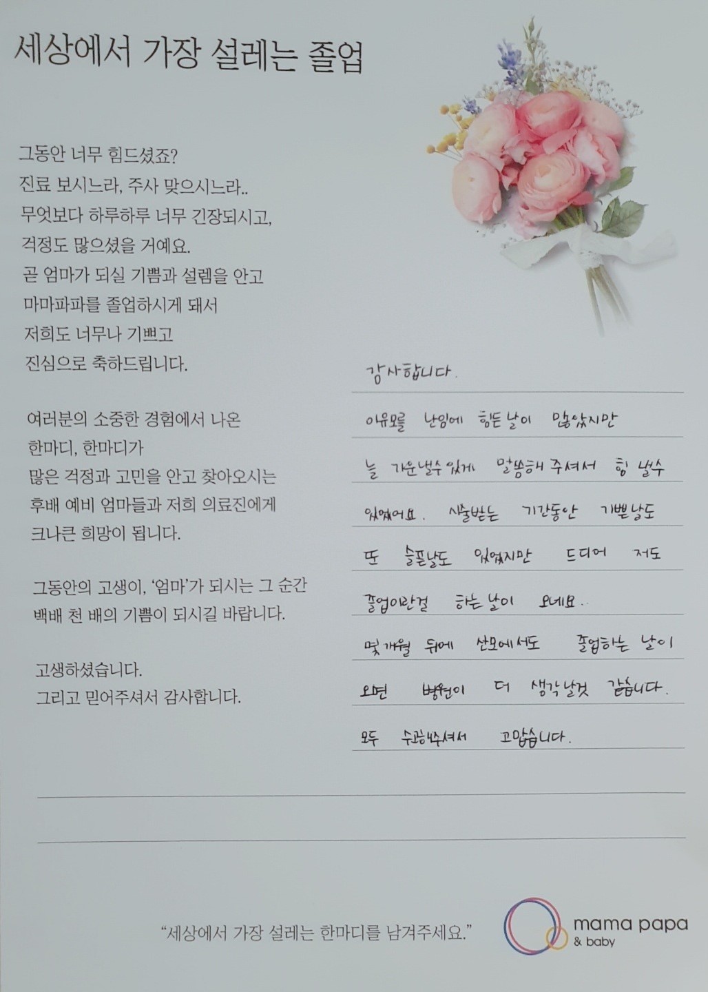 마마파파&베이비 졸업을 진심으로 축하드립니다.