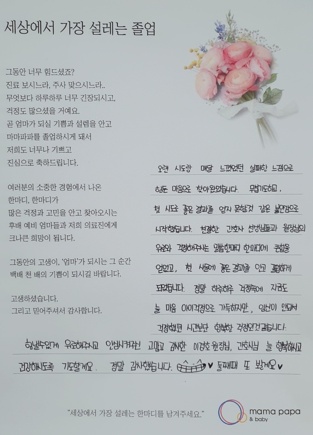 마마파파&베이비 졸업을 진심으로 축하드립니다.