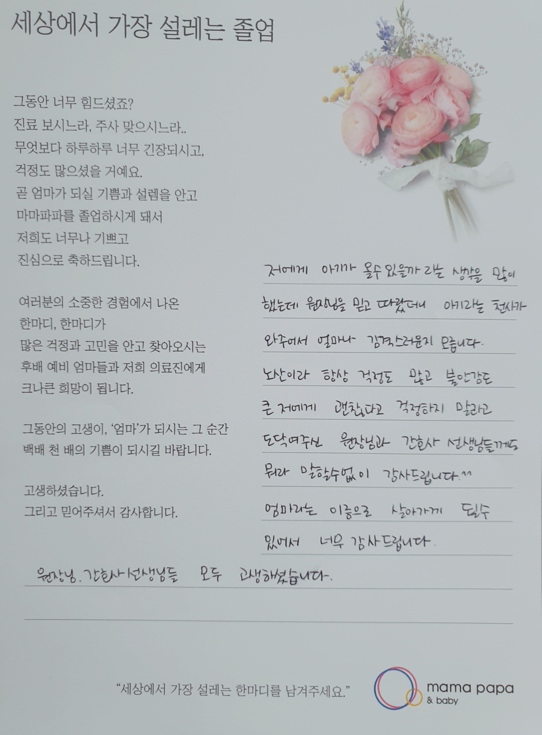 마마파파&베이비 졸업을 진심으로 축하드립니다.