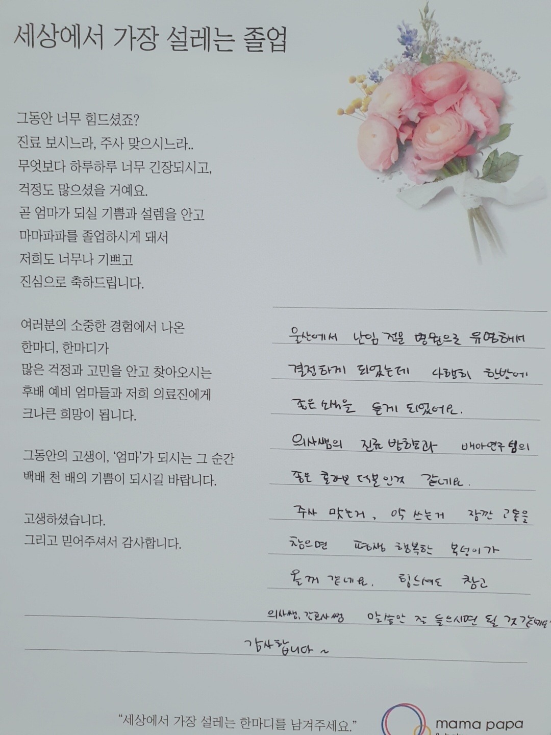 마마파파&베이비 졸업을 진심으로 축하드립니다.