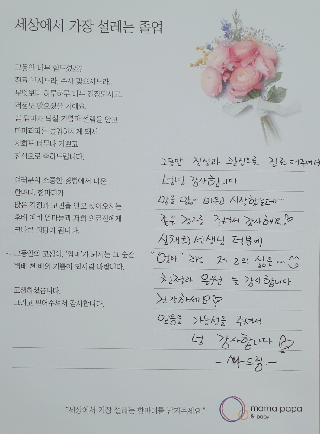마마파파&베이비 졸업을 진심으로 축하드립니다.