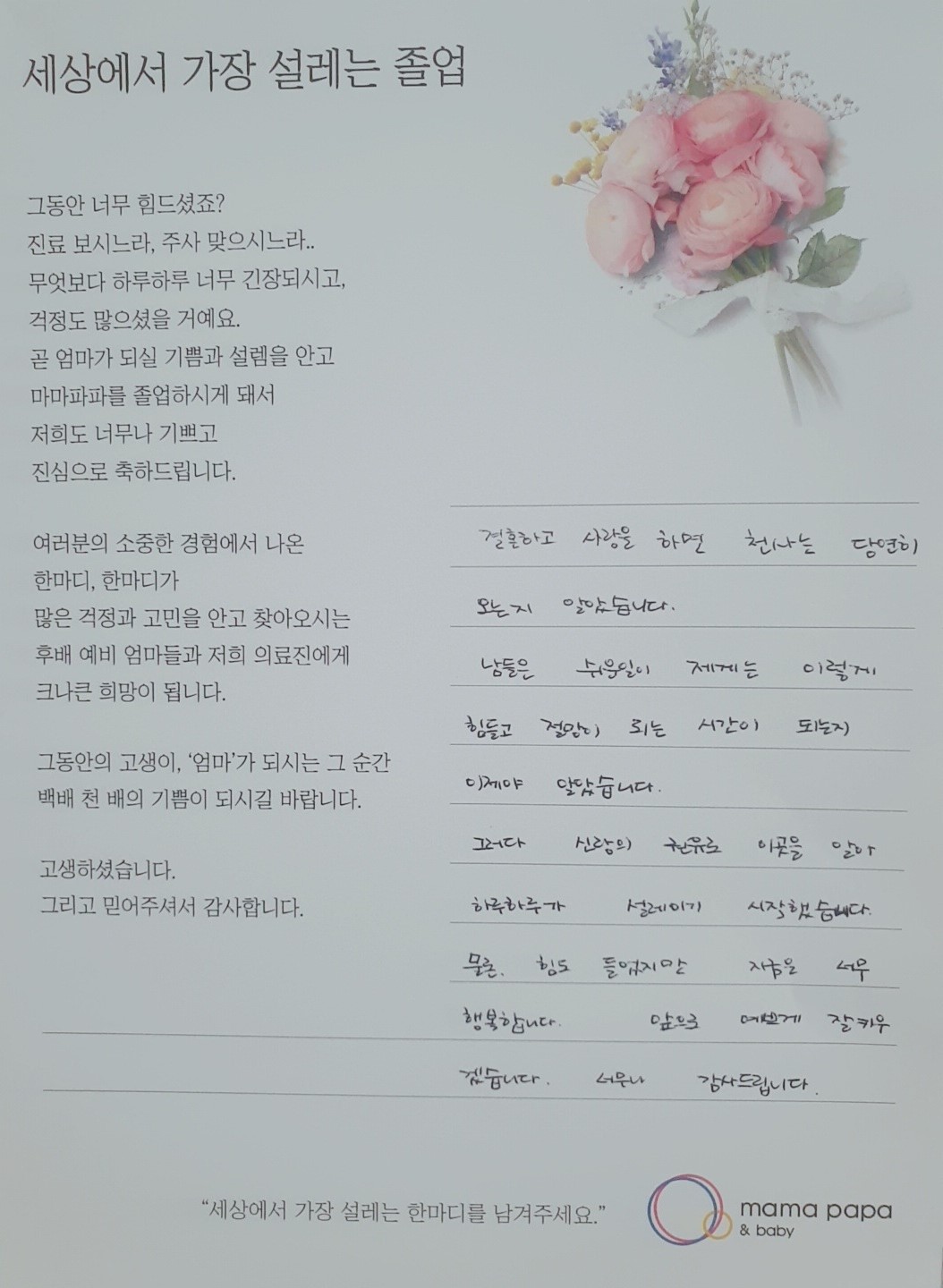 마마파파&베이비 졸업을 진심으로 축하드립니다.