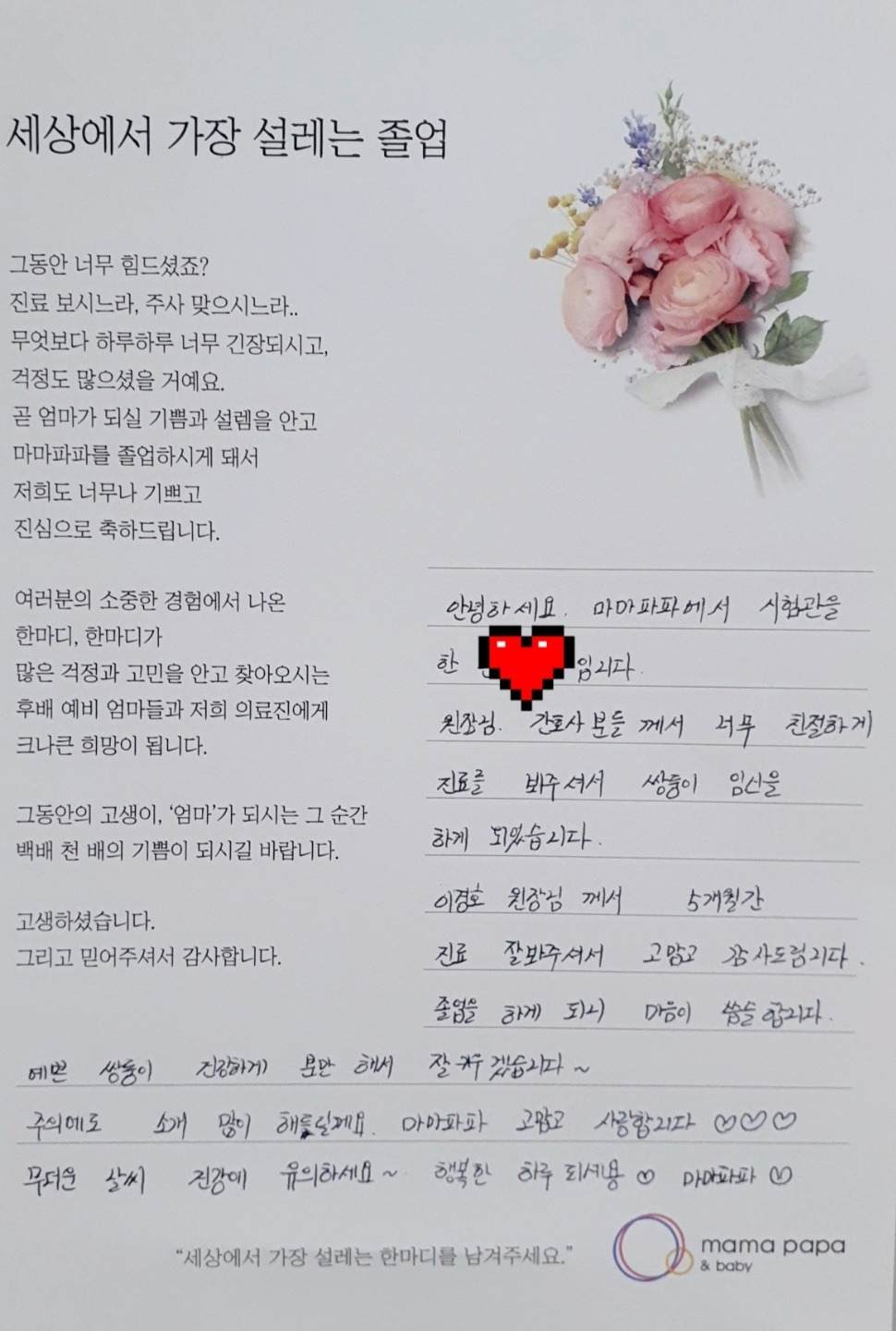 마마파파&베이비 졸업을 진심으로 축하드립니다.
