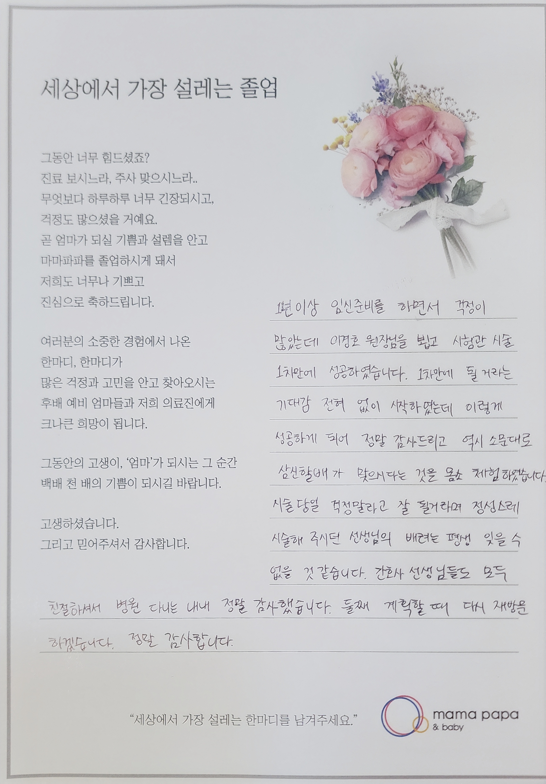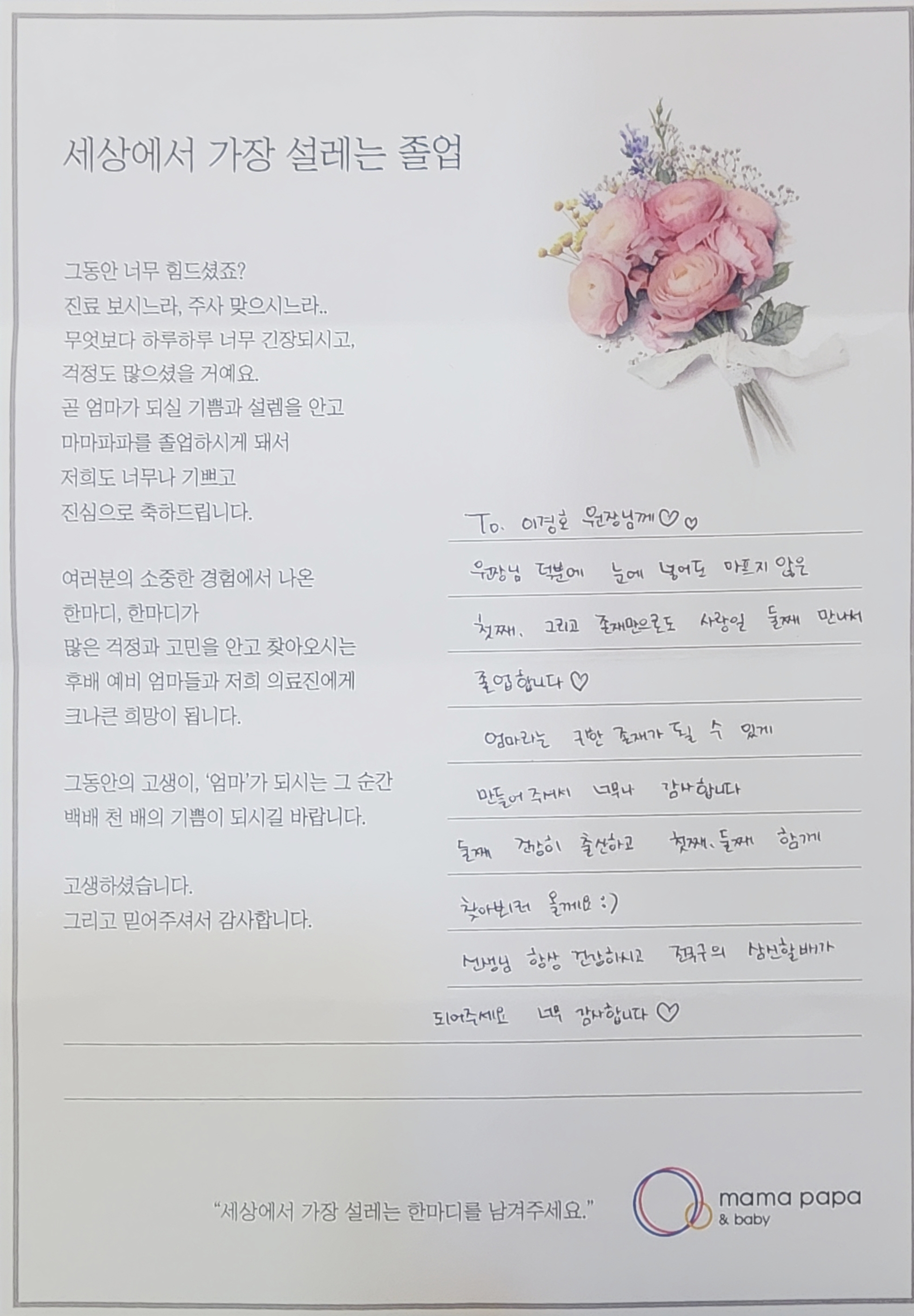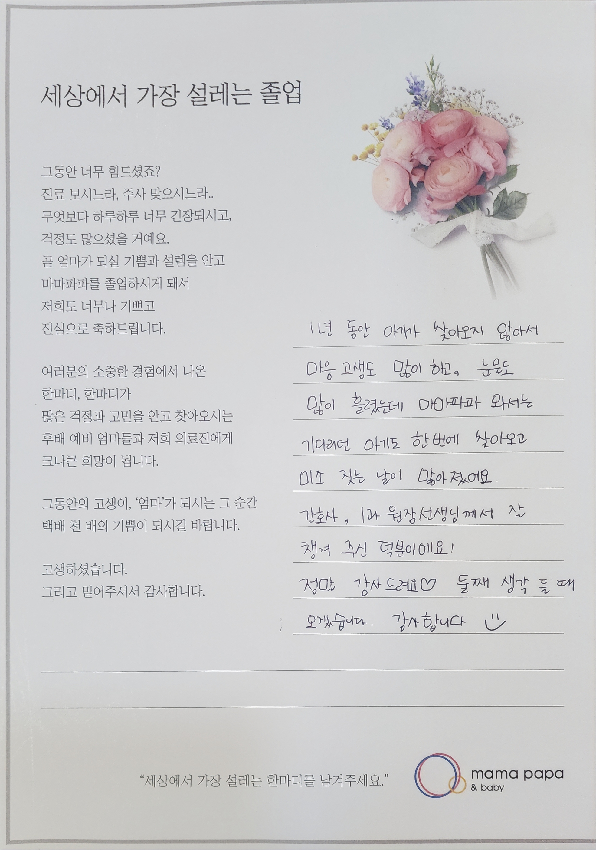 마마파파&베이비 졸업을 진심으로 축하드립니다.