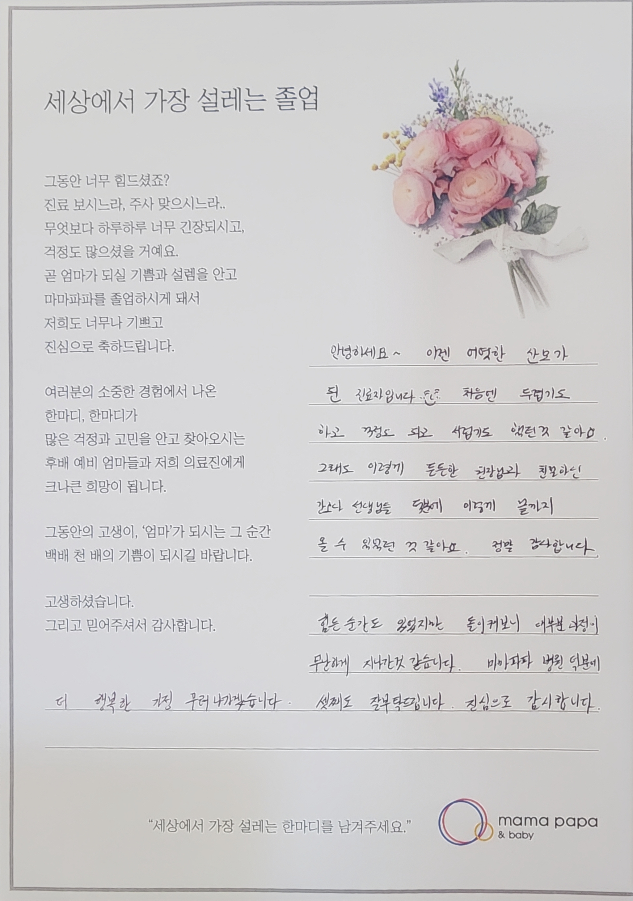 마마파파&베이비 졸업을 진심으로 축하드립니다.