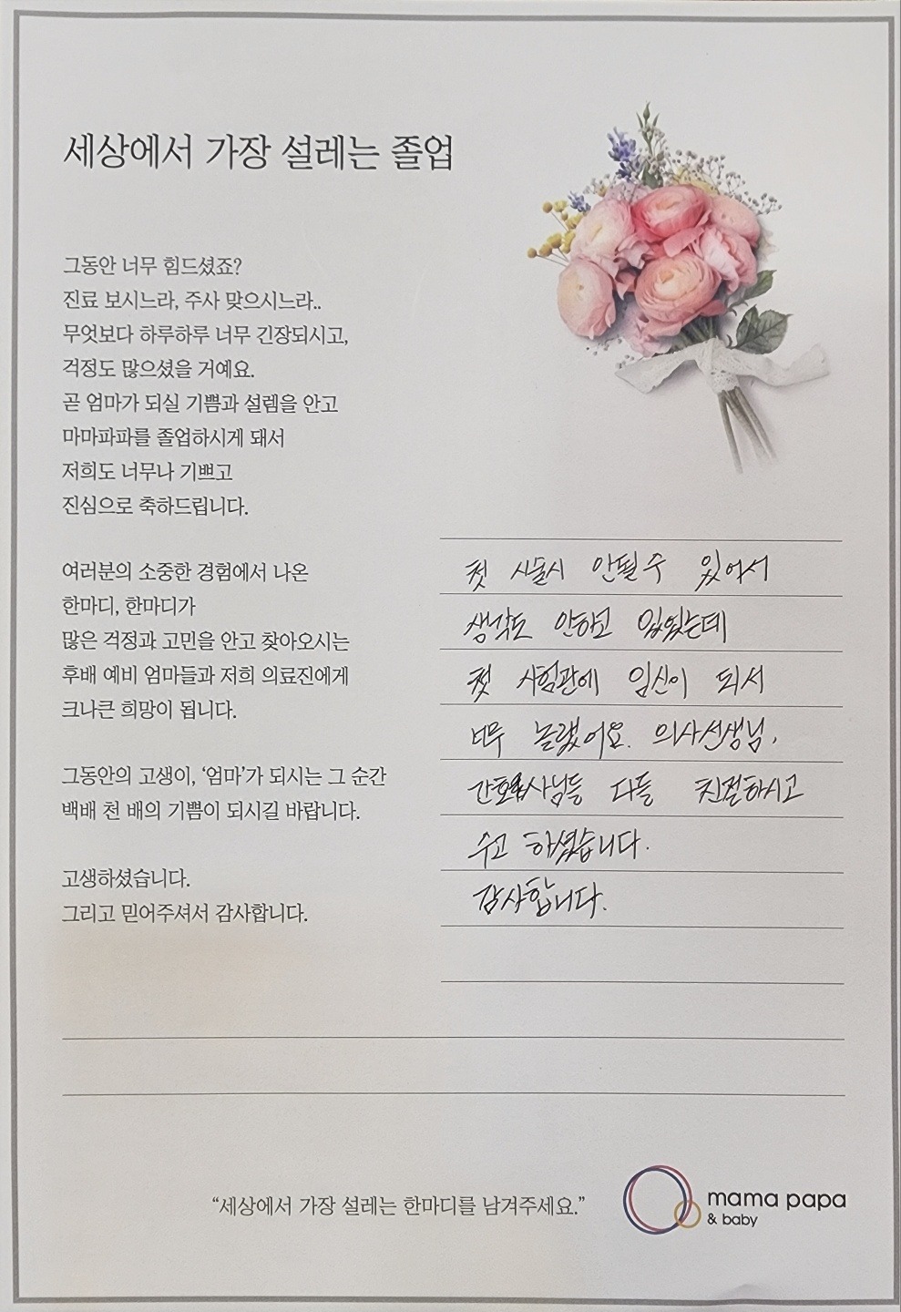 마마파파&베이비 졸업을 진심으로 축하드립니다.