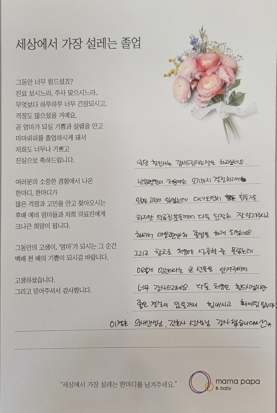 마마파파&베이비 졸업을 진심으로 축하드립니다.