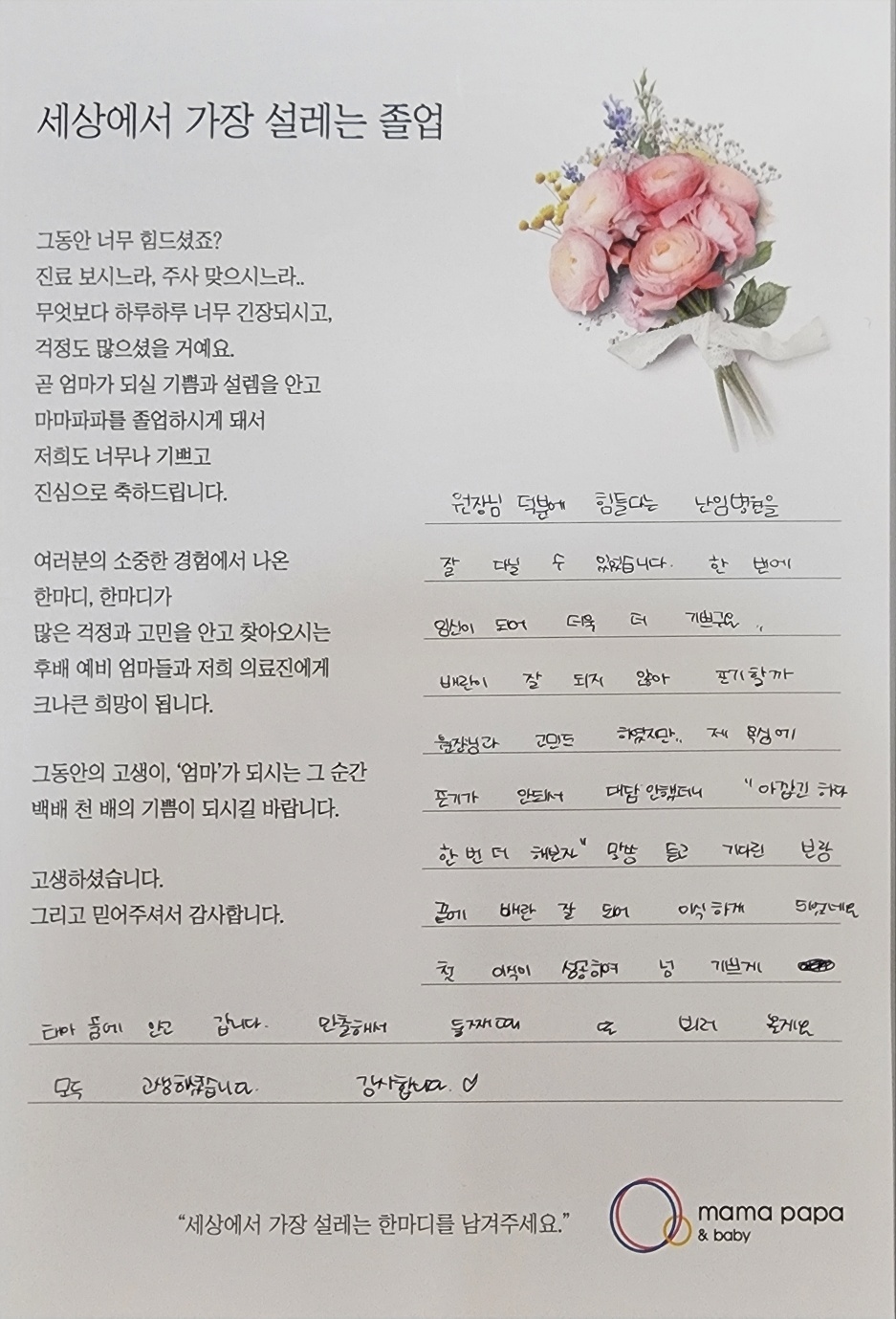 마마파파&베이비 졸업을 진심으로 축하드립니다.