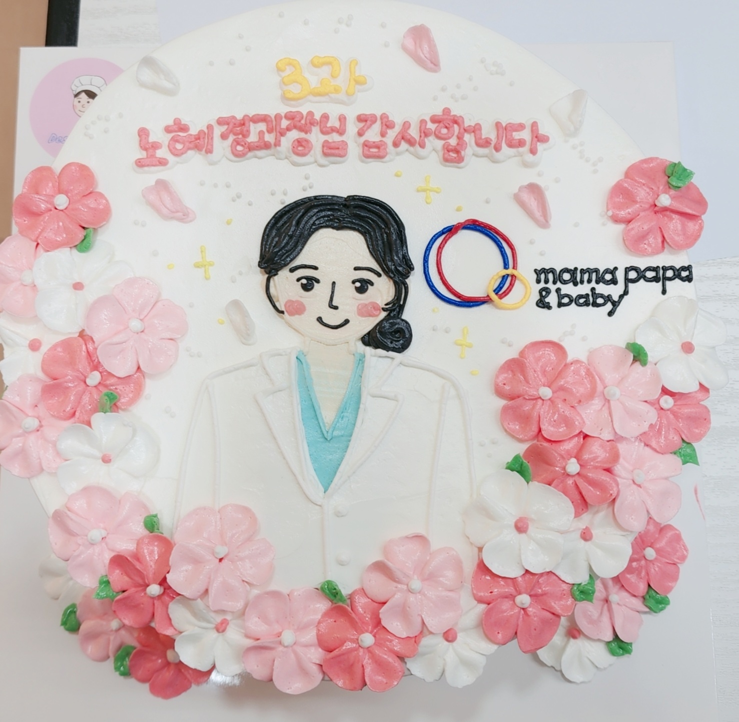 졸업하시면서 예쁜 케익 주시고 가셨습니다. 감사합니다.^^과장님을 꼭 닮은 예쁜 그림 넣어주셨어요~~건강하게 분만하세요!...