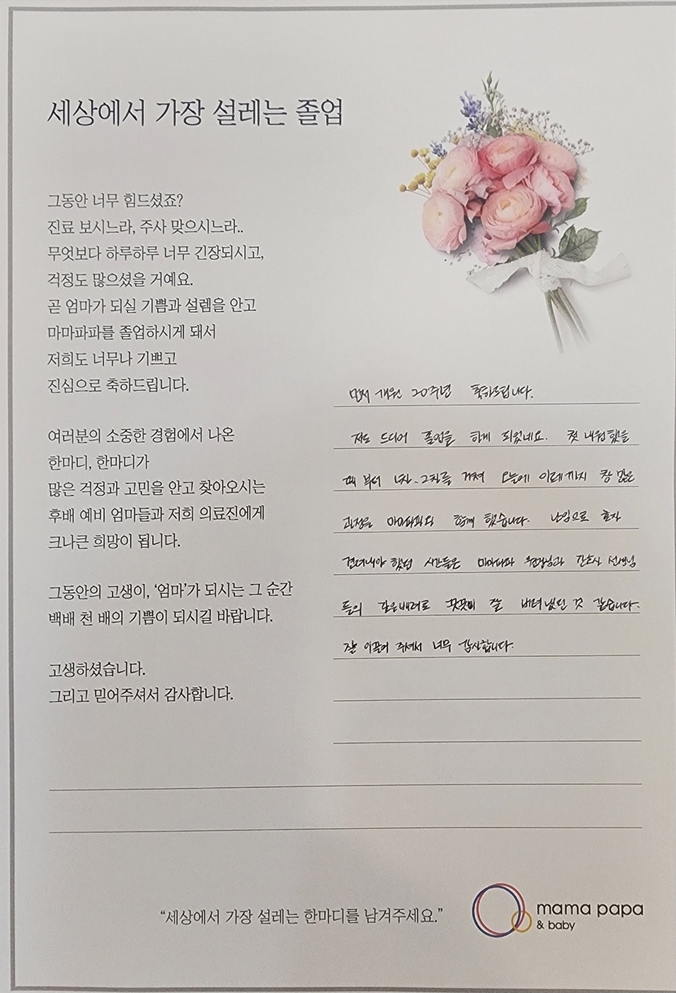 졸업을 축하드립니다^^ 건강하게 출산하세요!