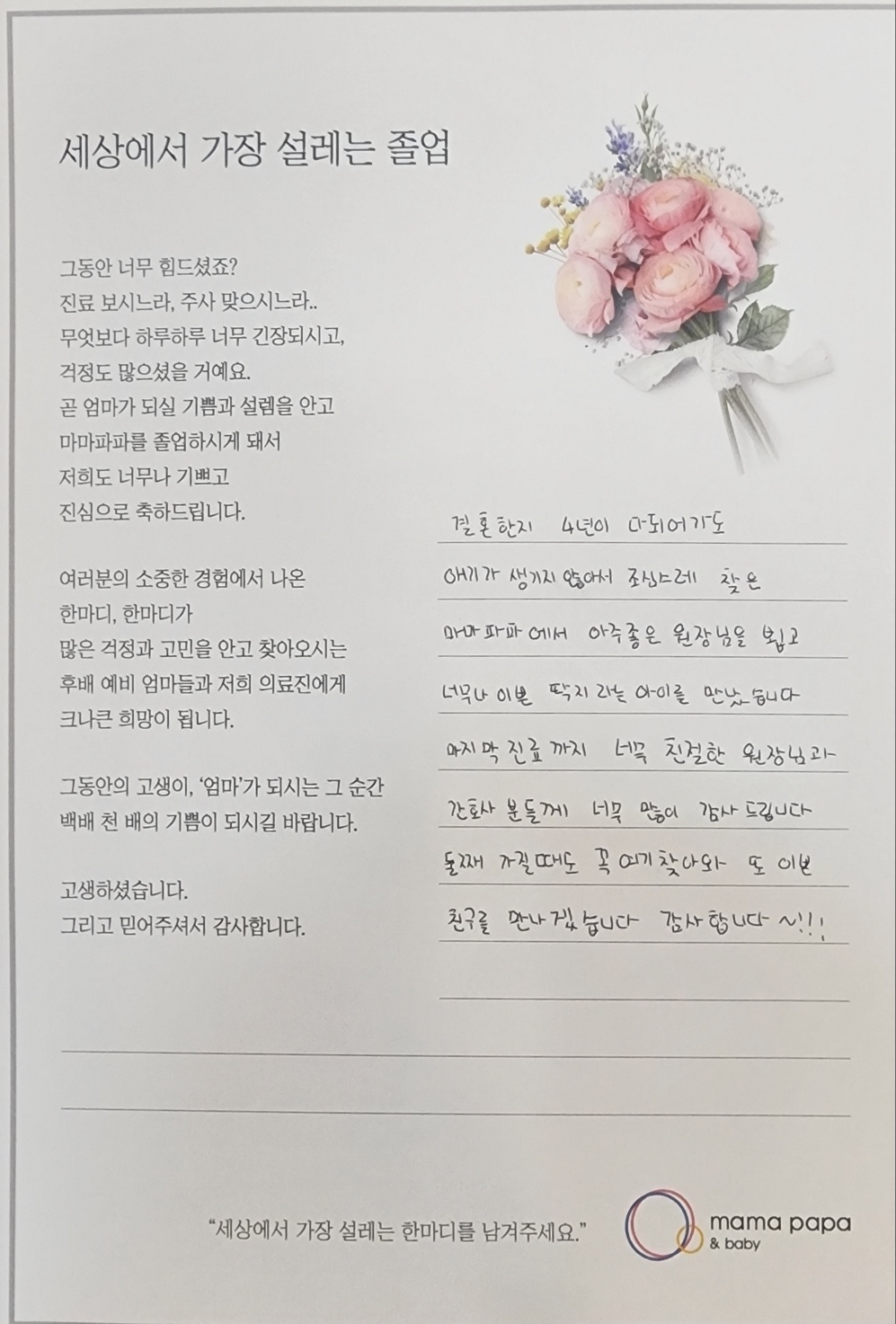졸업을 축하드립니다^^ 건강하게 출산하세요!