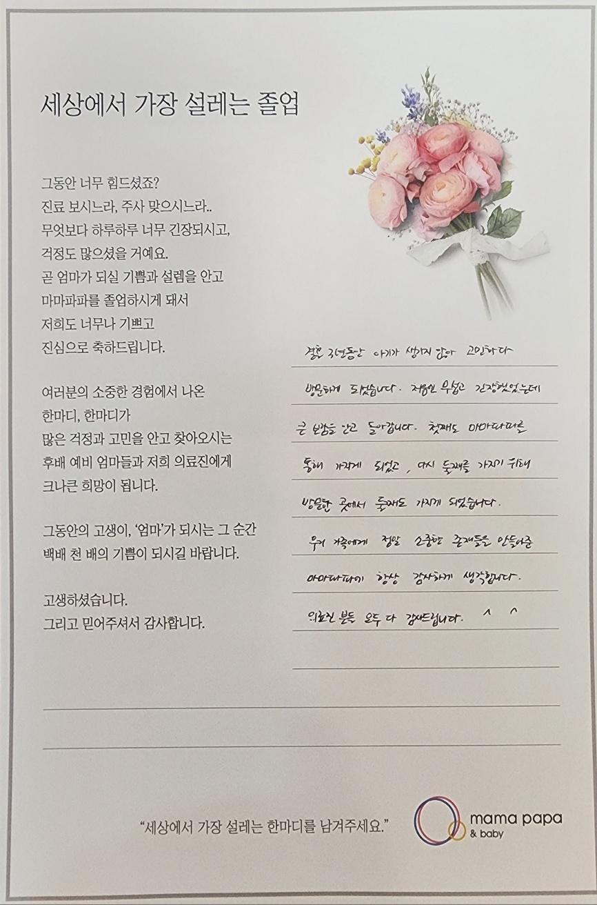 졸업을 축하드립니다^^ 건강하게 출산하세요!
