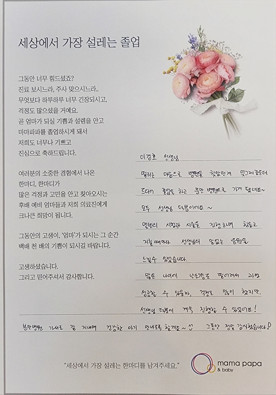 졸업을 축하드립니다. 건강하게 분만하세요!