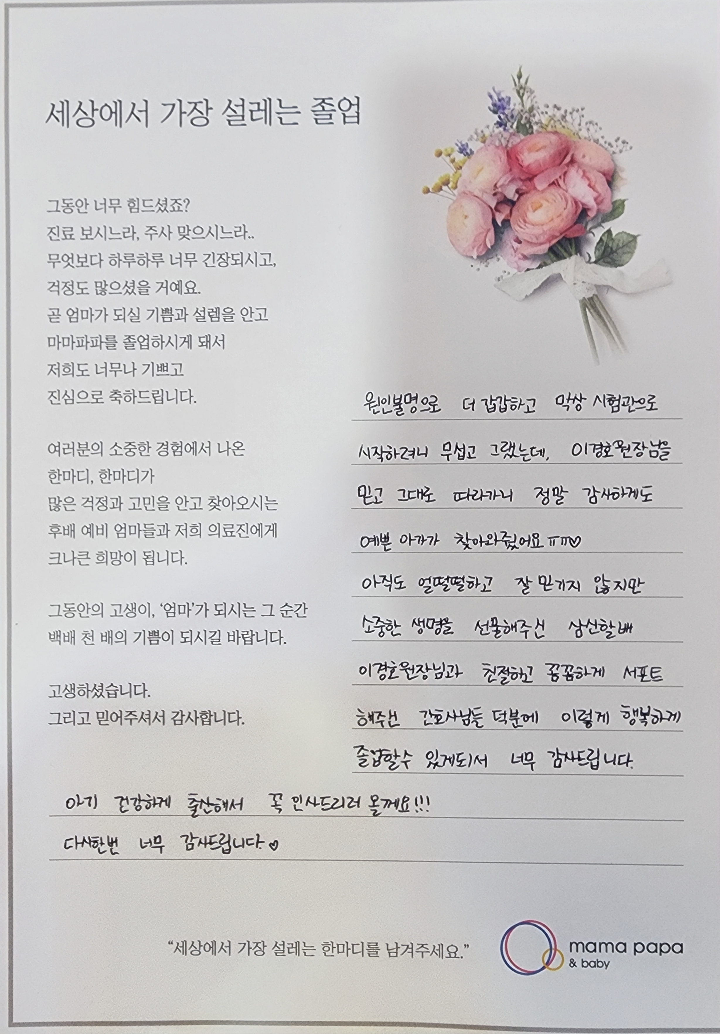 마마파파&베이비 졸업을 진심으로 축하드립니다.