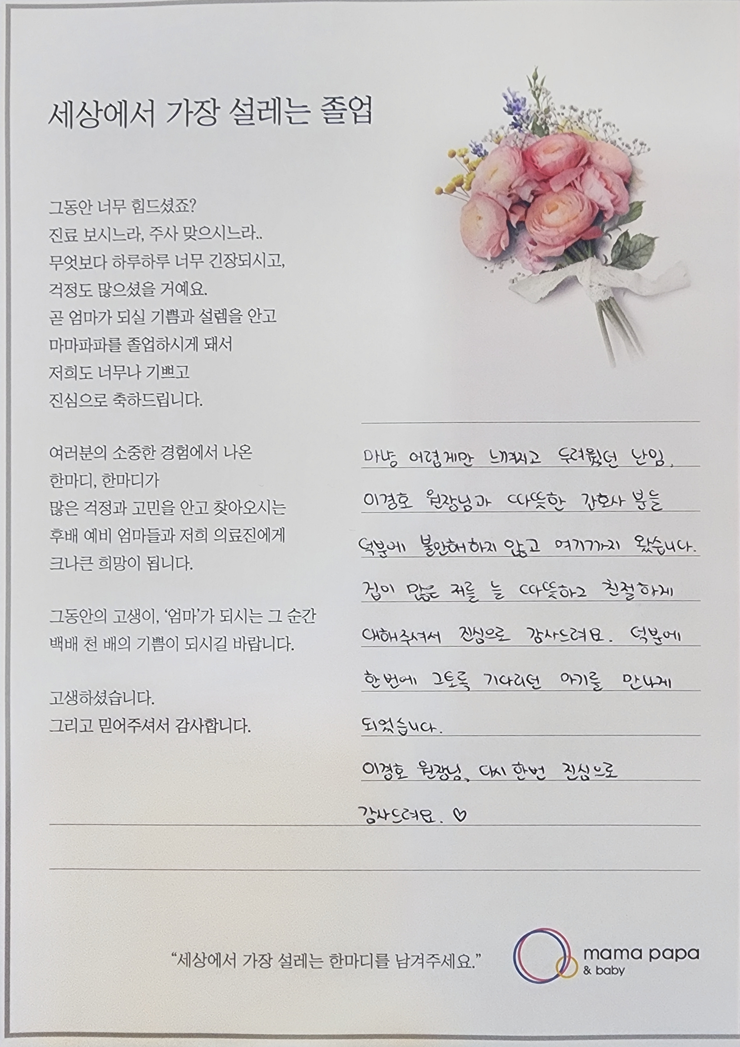 마마파파&베이비 졸업을 진심으로 축하드립니다.
