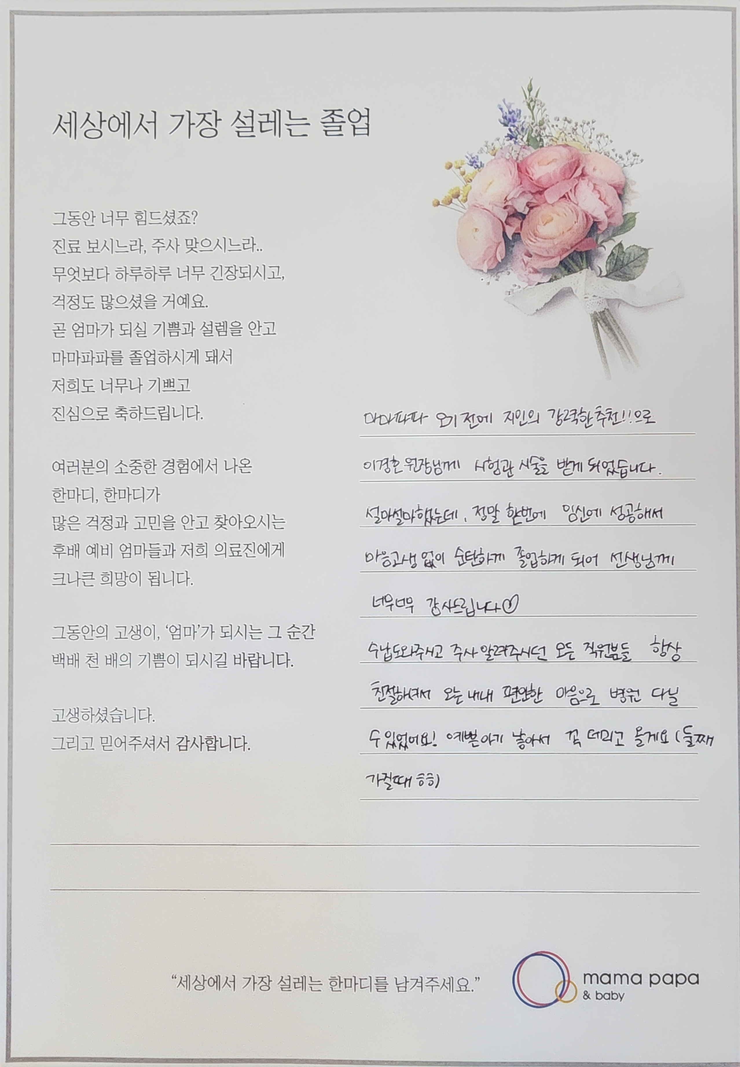 마마파파&베이비 졸업을 진심으로 축하드립니다.
