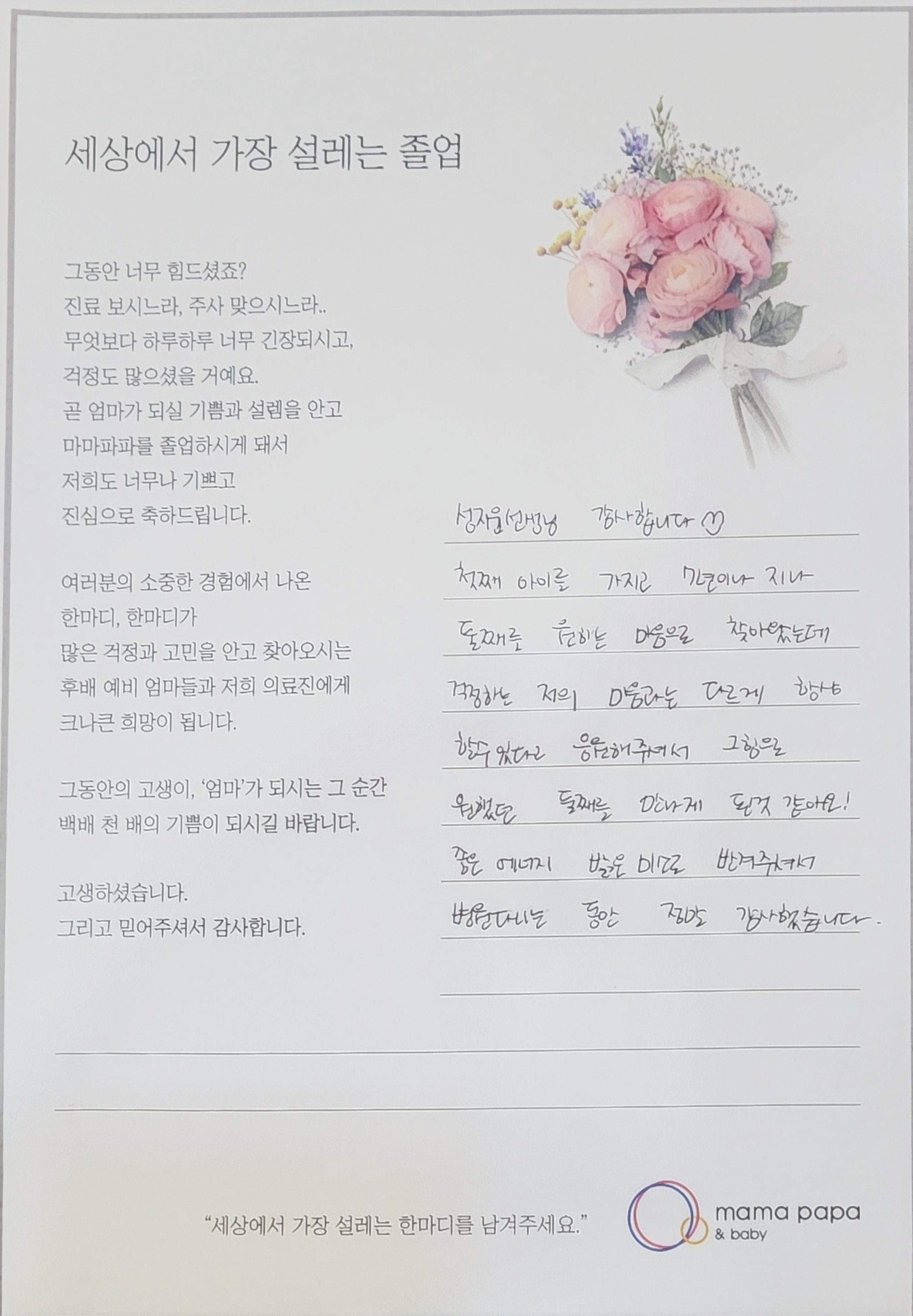 마마파파&베이비 졸업을 진심으로 축하드립니다.