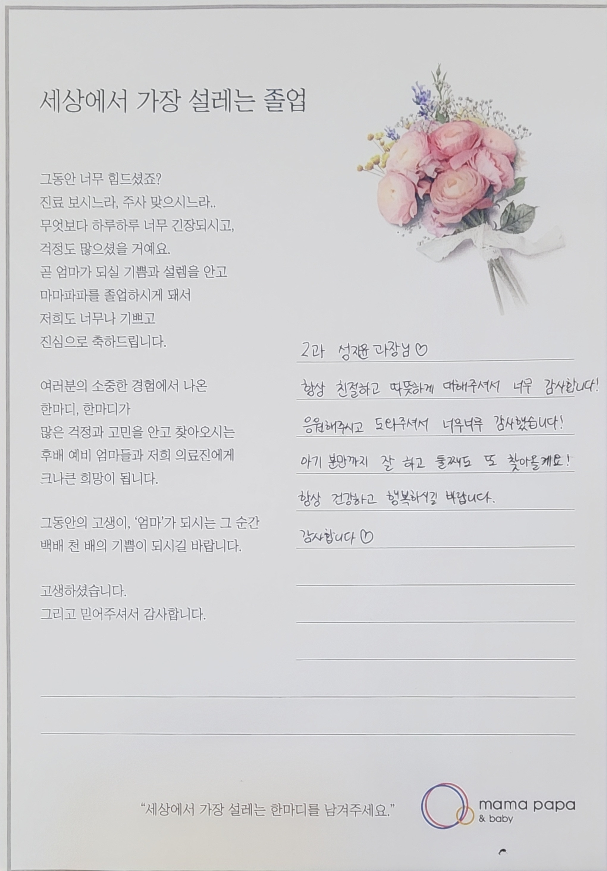 마마파파&베이비 졸업을 진심으로 축하드립니다.