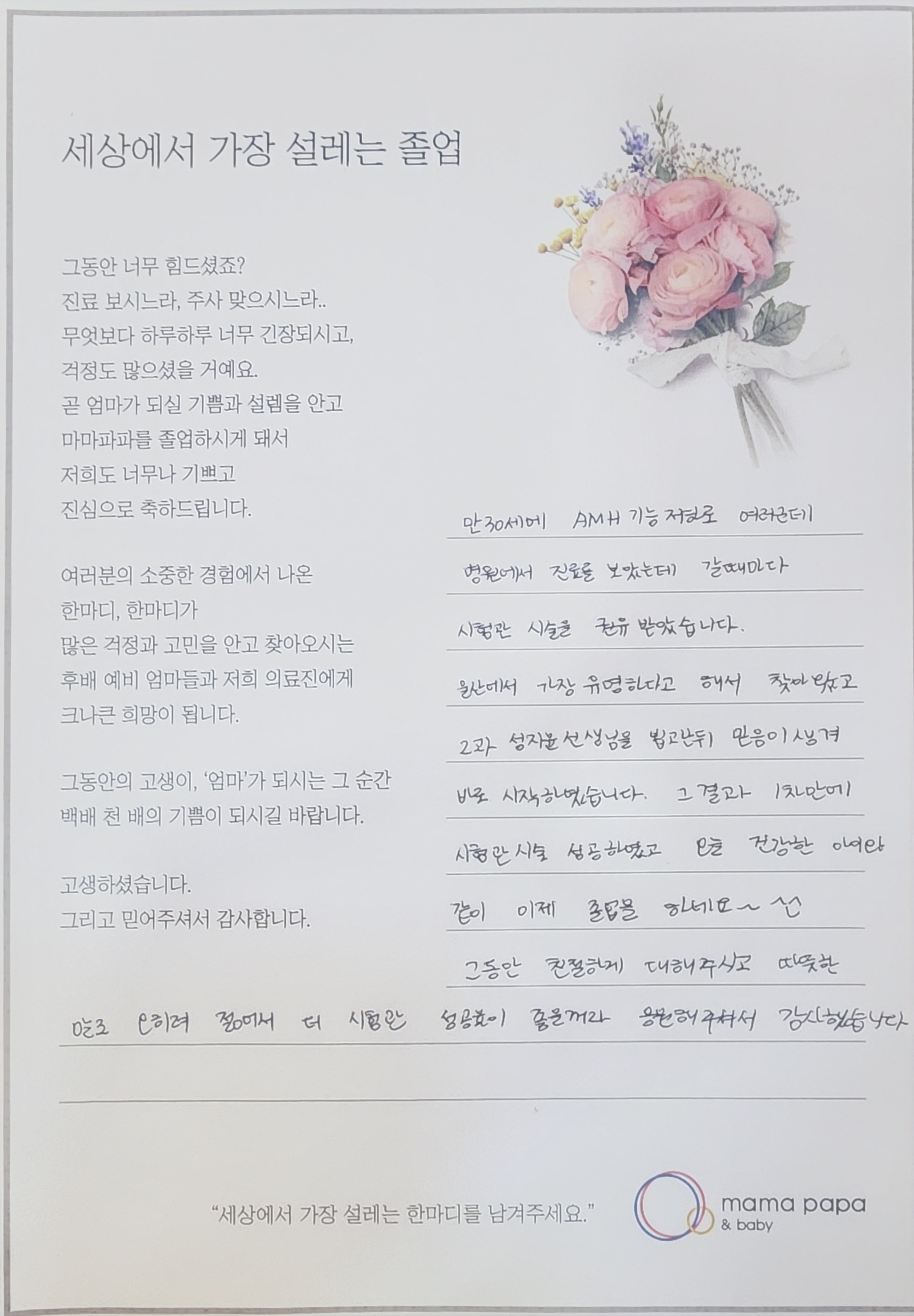 마마파파&베이비 졸업을 진심으로 축하드립니다.