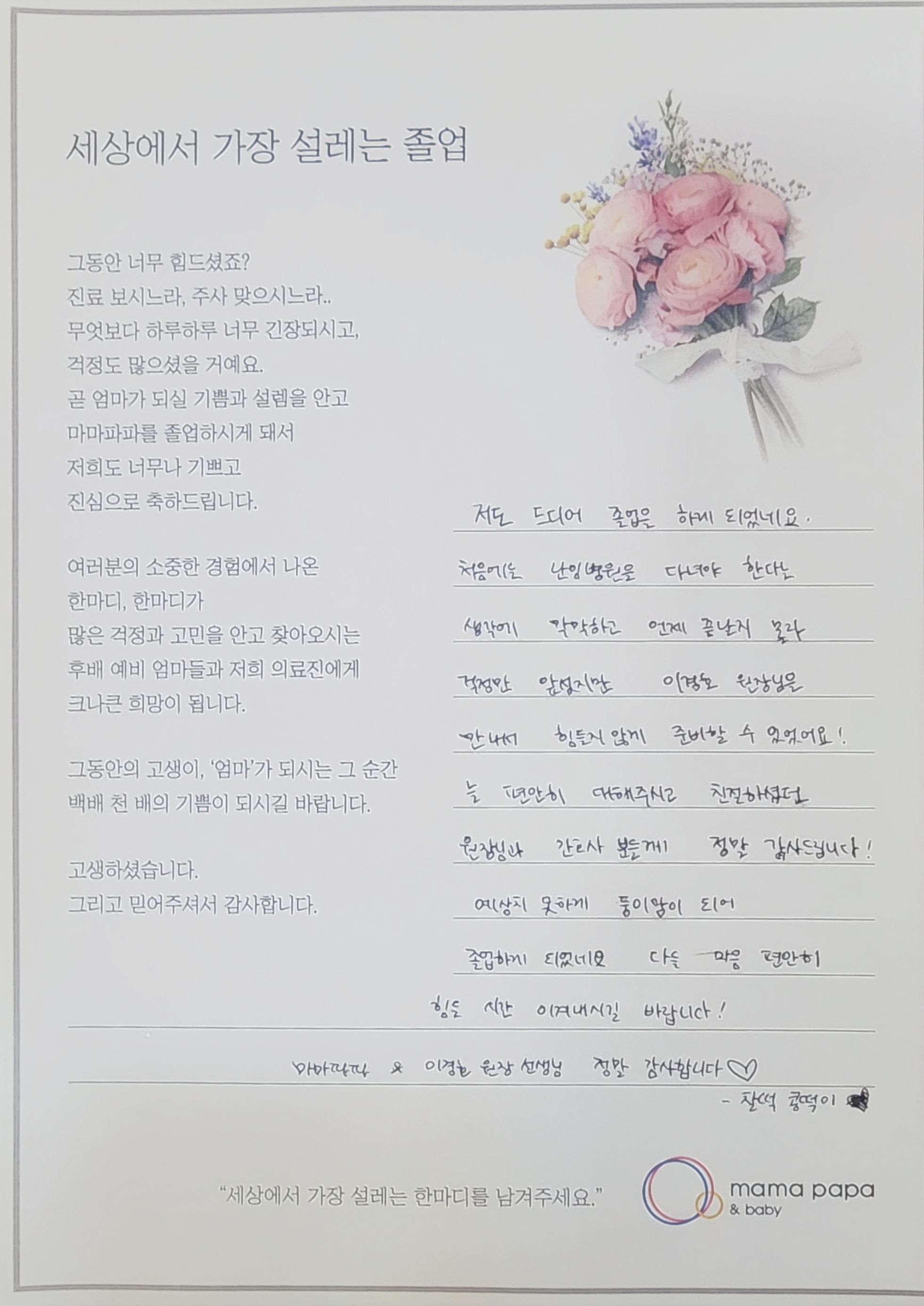 마마파파&베이비 졸업을 진심으로 축하드립니다.