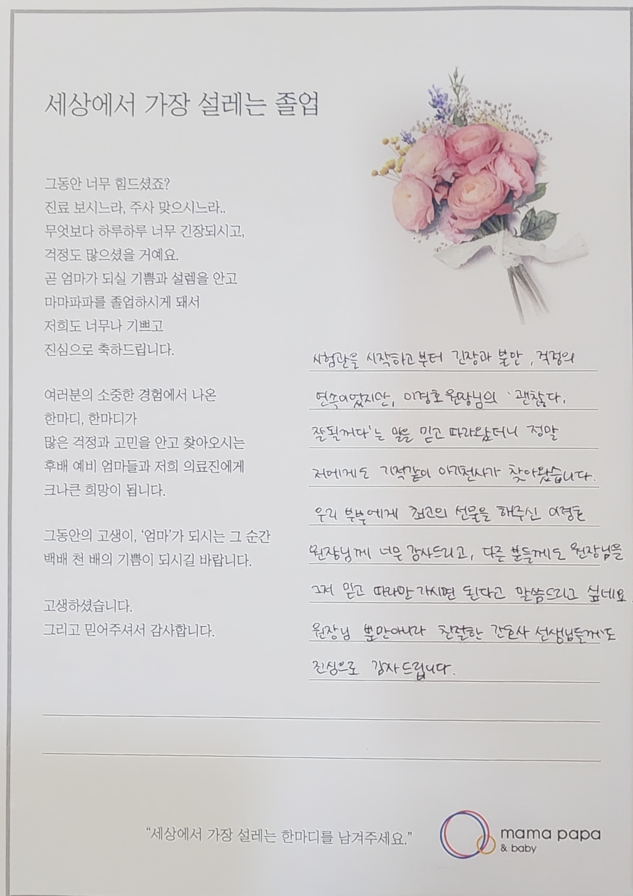 마마파파&베이비 졸업을 진심으로 축하드립니다.