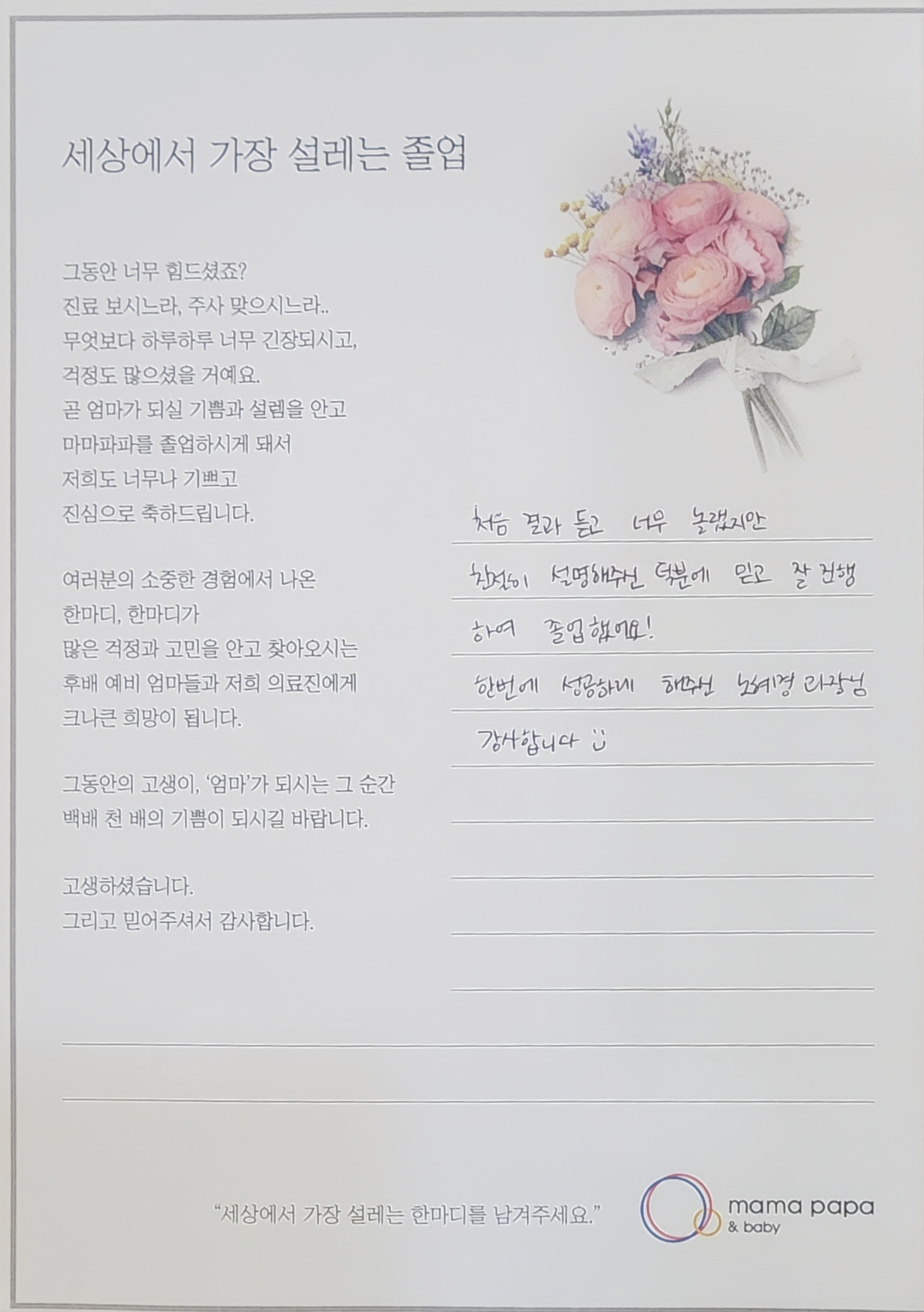 마마파파&베이비 졸업을 진심으로 축하드립니다.
