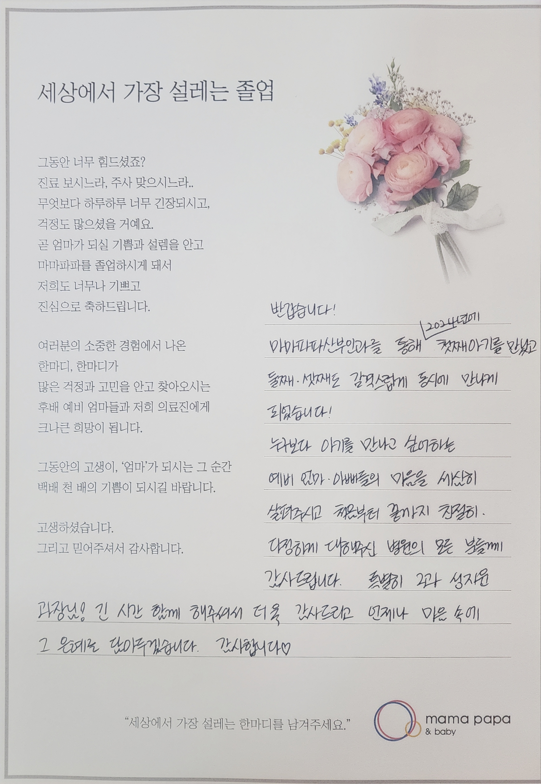 마마파파&베이비 졸업을 진심으로 축하드립니다.