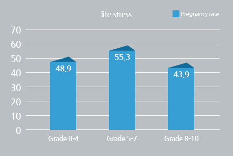 Moderate life stress contribute to enhancement of pregnancy rate, but there was no correlation between pregnancy rate and IVF procedure-related stress.